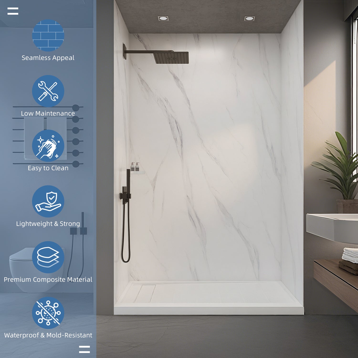 • SMC shower trays (cuttable, anti-slip, long-lasting)